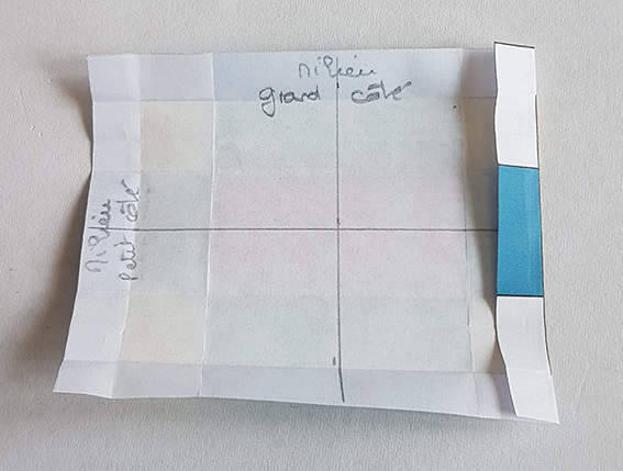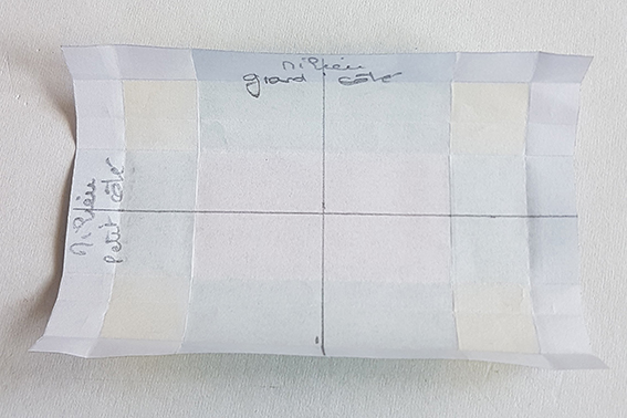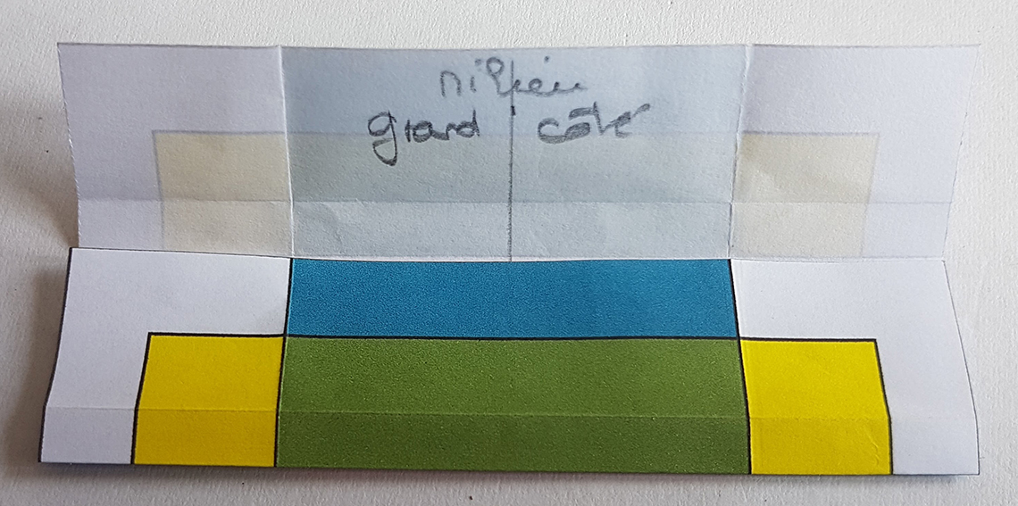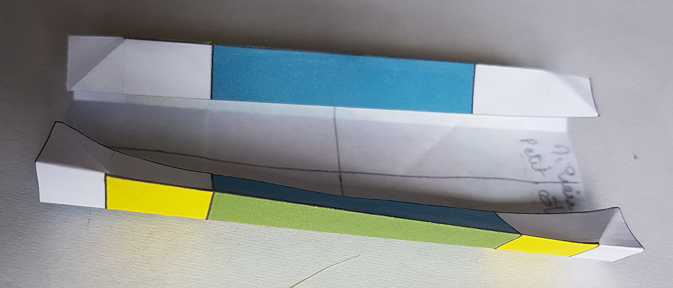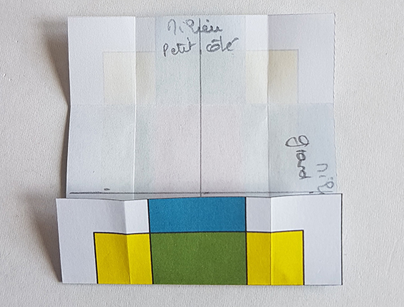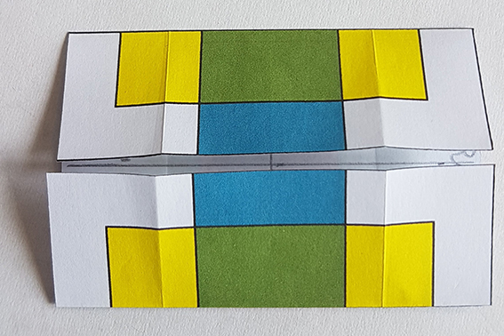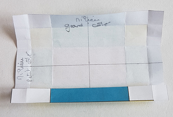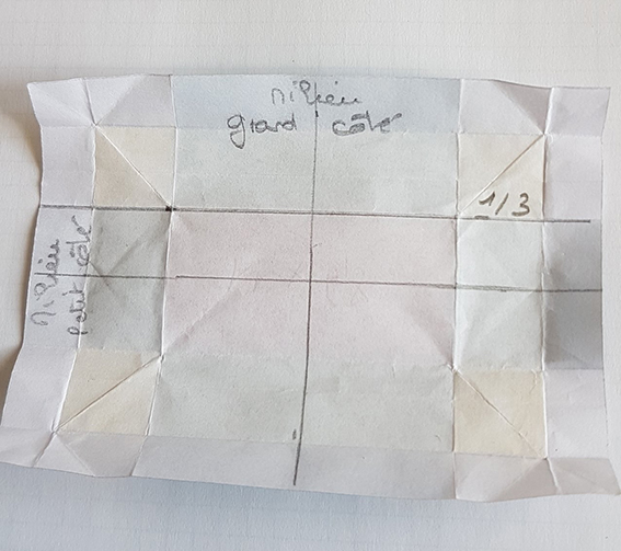 Ouvrir puis plier chacun son tour, les quatre côtés sur le 1/3 de la moitié du rectangle.
