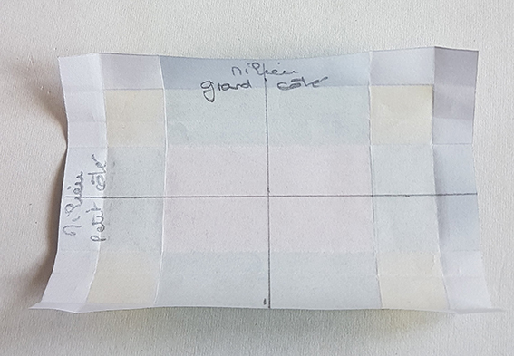 Plier les 4 angles et bien marquer le pli dans le carré jaune.